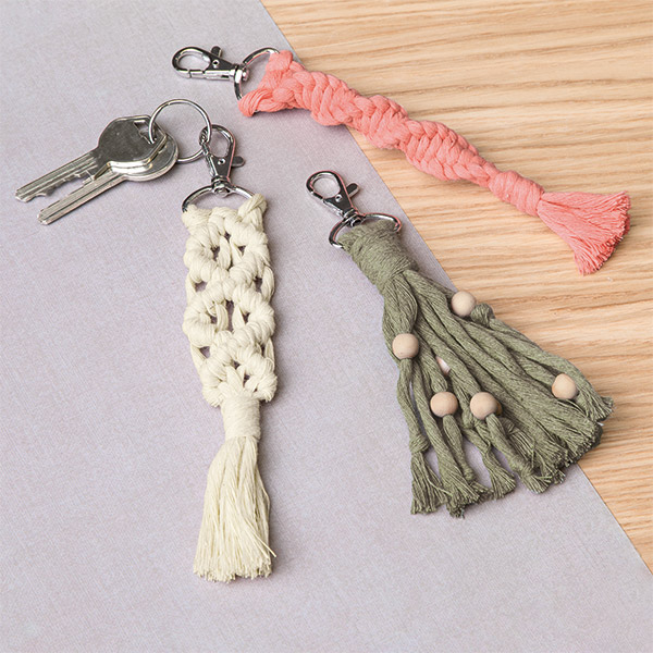 Lerne einfache Makramee-Knoten und gestalte deinen eigenen Schlüsselanhänger.